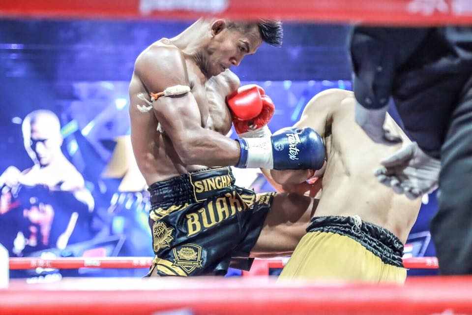 บัวขาว บัญชาเมฆ ยังคงวาดลีลาฝีไม้ลายยุทธ์ กระหน่ำแทงเข่า คู่ปรับเก่าชาวจีน กง หลินเฟย ไปอย่างหมดสภาพ ในศึกคุนหลุนไฟต์ อินไทยแลนด์ เวิร์คพอยต์สตูดิโอ รังสิต เมื่อวันที่ 10 มิ.ย. ที่ผ่านมา เรียกเสียงสะใจให้กับแฟนมวยชาวไทยแบบกระหึ่มและกึกก้องทั้งเวทีมวย